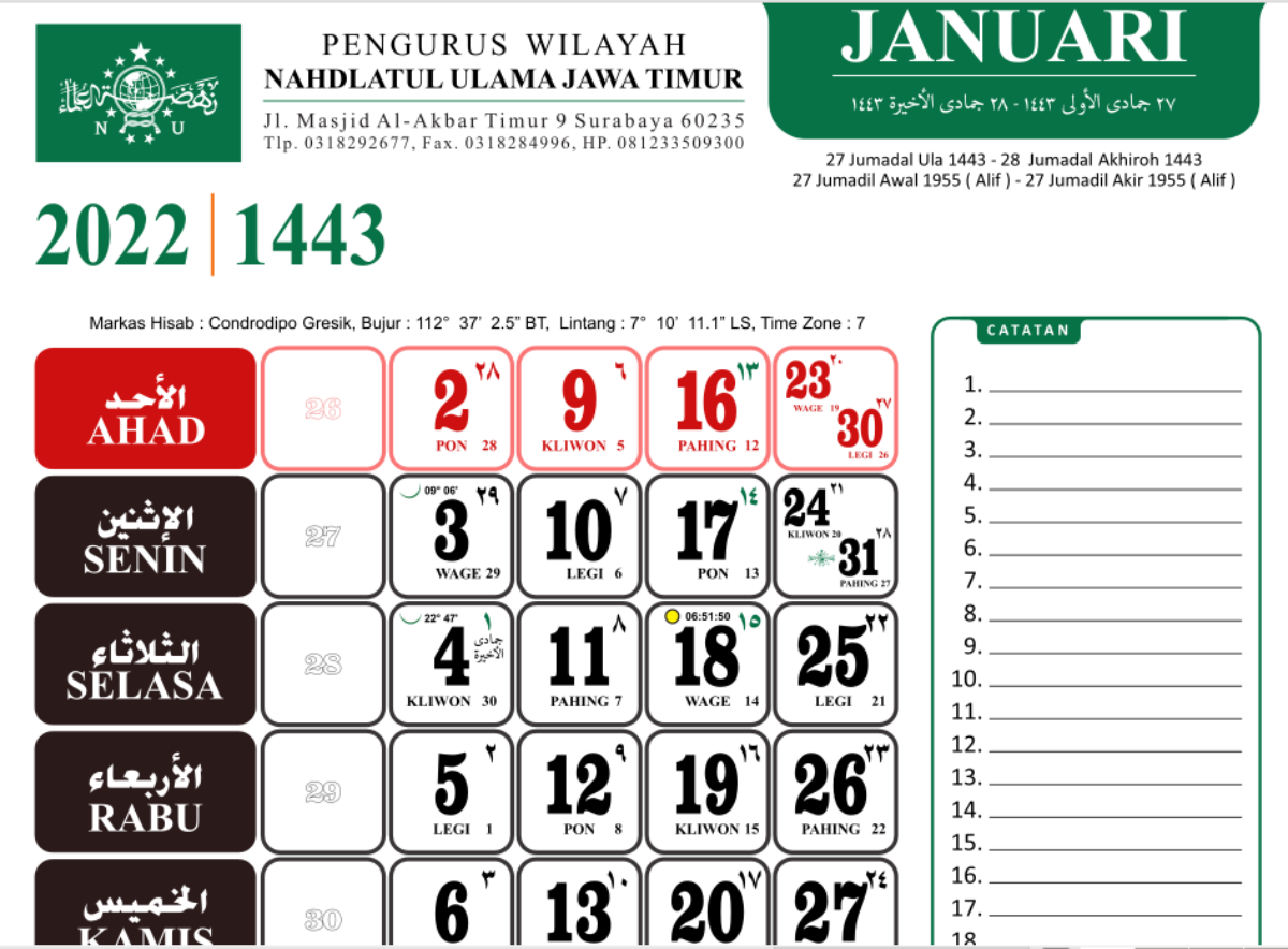 Kalender Islam Nu 2022 M Dari Lembaga Falakiyah Nahdlatul Ulama Alhabib S Blog